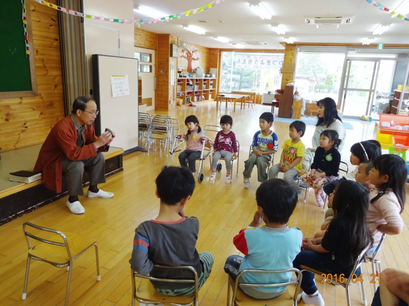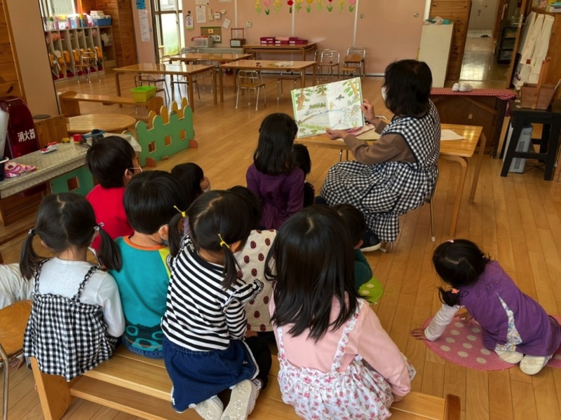 帰りのおしたくができたら、先生が絵本やお話をしてくれます。今日はどんなお話かな?
