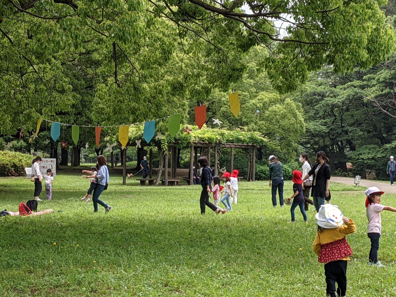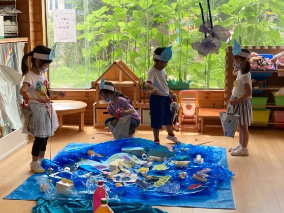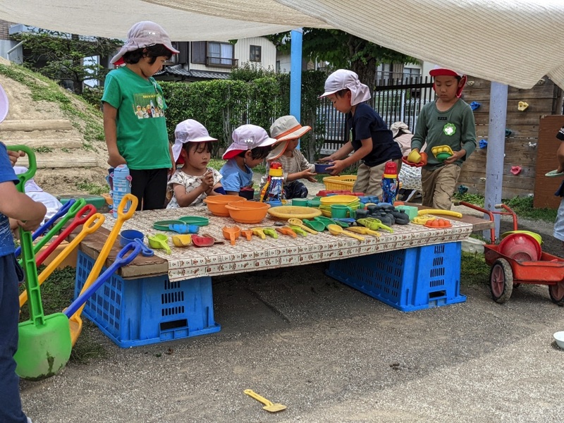 自由遊びの時間です。おままごとをしたり、かくれんぼをしたり、みんなの笑い声が聞こえます。
